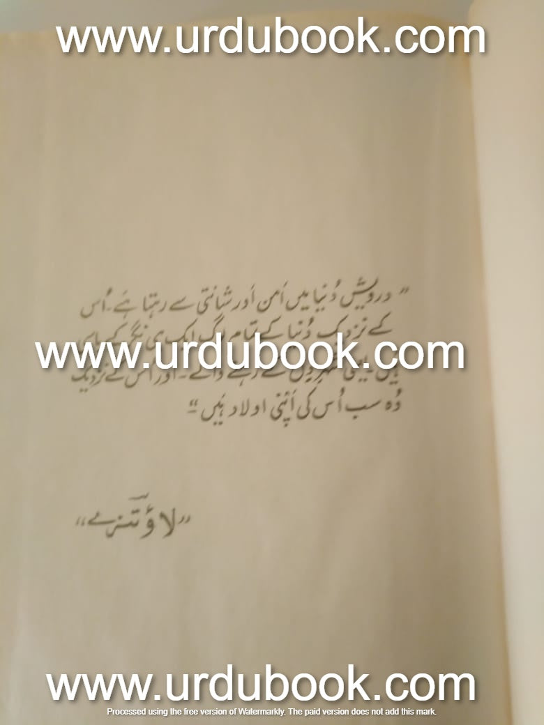 اپنی اماں کے نام جو میری ہر تحریر اور شوق کا سر حشمپہ تھیں اور اب بھی ہیں درویشں دنیا میں امن اور شانتی سے رہتا ہے اس کے نزدیک دنیا کے تمام لوگ ایک ہی نگر کے باسی ہیں ;یعنی شہر دل کے رہنے والے اور اس کے نزدیک وہ سب اس کی اپنی اولاد ہیں