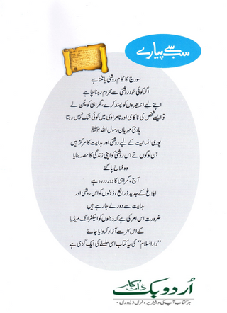 Order your copy of Sab Se Pyaray (Muhammad Rasool Allah) Silsila Qasas ul Anbiya 30/30 سب سے پیارے (محمد رسول اللہ ﷺ) سلسلہ قصص الانبیاء from Urdu Book to earn reward points along with fast Shipping and chance to win books in the book fair and Urdu bazar online.