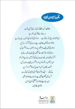 طاقت کسی اچھے آدمی کو ملے تو ایک نعمت، برے کو ملے تو ایک نشہ ہے، ایسا نشہ جو سر چڑھ کر بولتا ہے اور آدمی کو فساد کی طرف لے جاتا ہے جو افراد اور قومیں طاقت دینے والے کی شکرگزار بوں وہ تاریخ میں نیک نام ٹھہریں اور جنہوں نے ناشکری کی بربادی اور ہلاکت نے انھیں اپنی لپیٹ میں لے لیا۔ قرآن مجید ان کے مٹ جانے کی خبر ہمیں دیتا ہے تا کہ ہم ان سرکشوں، نافرمانوں اور ناشکروں جیسے نہ ہو جائیں، نعمت ملنے پر اس ذات پاک کا شکر ادا کریں۔ یہ کہانی، ایک نا فرمان قوم کی تباہی کی کہانی ہے جس میں نصیحت بھی ہے، اور عبرت کا مقام بھی ان کے لیے جو صراط مستقیم کو اپنی منزل بنانا چاہتے ہیں