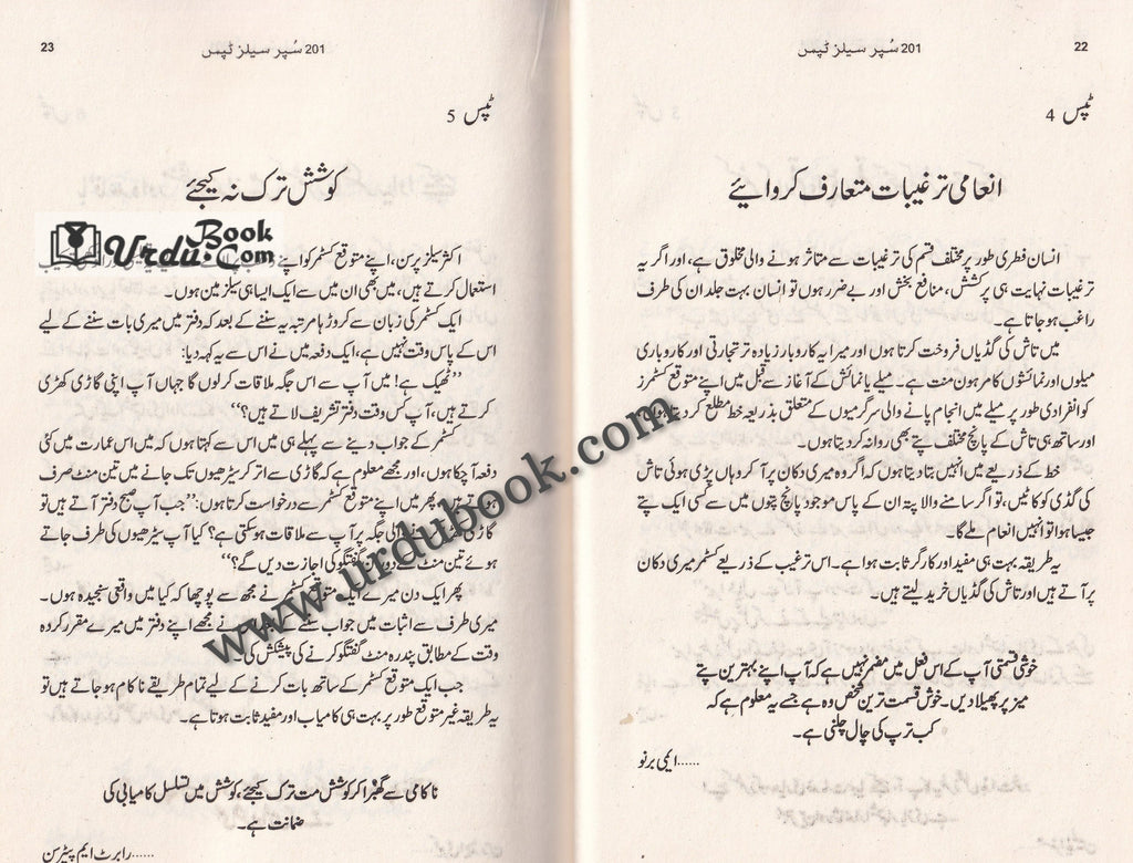 Order your copy of 201 Super Sales Tips - ۲۰۱ سپر سیلز ٹپس from Urdu Book to earn reward points along with fast Shipping and chance to win books in the book fair and Urdu bazar online.